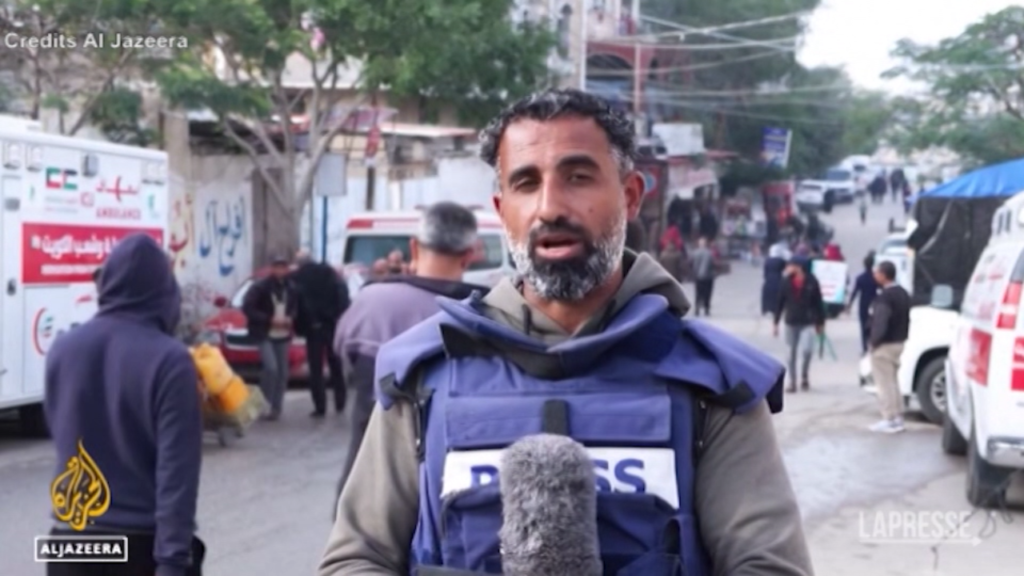Esplosione durante la diretta del reporter di Al Jazeera. Hani Mahmoud stava documentando la situazione fuori dall’ospedale kuwaitiano a Rafah, nel sud della Striscia di Gaza, al confine con l’Egitto. Il rumore dell’esplosione, il fuoco e la nuvola di fumo grigio si sono mescolati a scene di persone che si precipitavano in diverse direzioni, alcune al riparo mentre altre scappavano dalla zona della deflagrazione.
