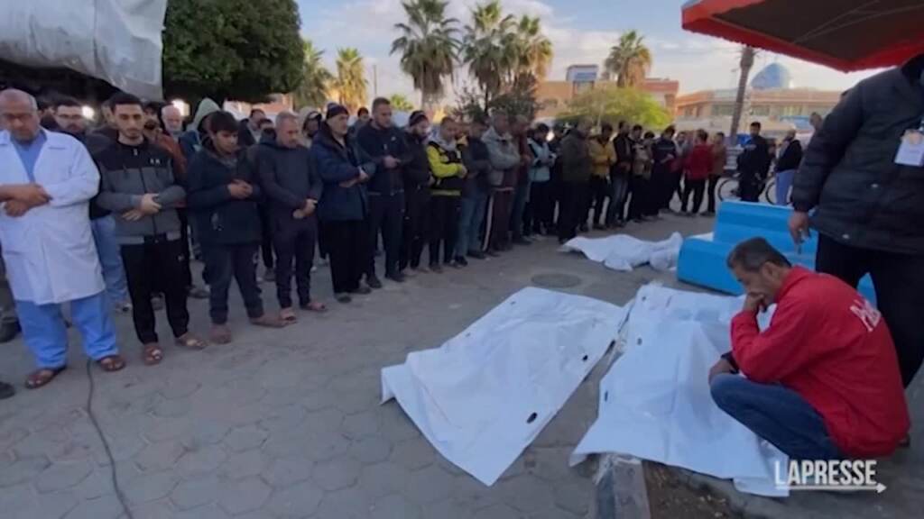 Preghiere per i morti, davanti ai corpi deposti fuori dall’ospedale Al Aqsa nella Striscia di Gaza, ricoperti da lenzuoli bianchi. Più di 20.000 palestinesi sono stati uccisi nella guerra di Israele per distruggere Hamas e più di 53.000 sono rimasti feriti, secondo i funzionari sanitari di Gaza. Il Ministero della Salute della Striscia ha dichiarato sabato sera che 201 persone sono state uccise nelle ultime 24 ore.
