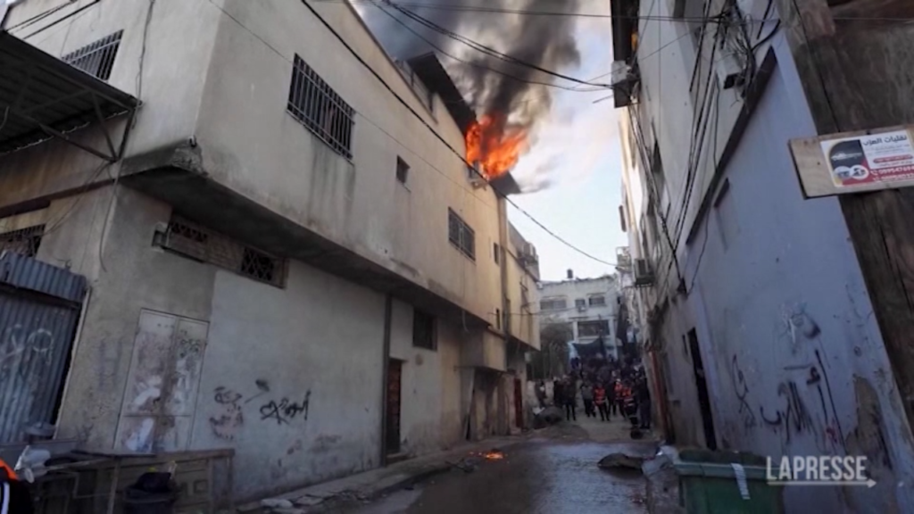 Un’abitazione in un campo profughi in Cisgiordania è stata danneggiata in un raid israeliano. Nelle immagini le fiamme che escono da una finestra dell’edificio nel campo profughi di Nour Shams, vicino alla città di Tulkarem. Il Ministero della Sanità palestinese ha dichiarato che sette persone sono state ferite e quattro case sono state distrutte.