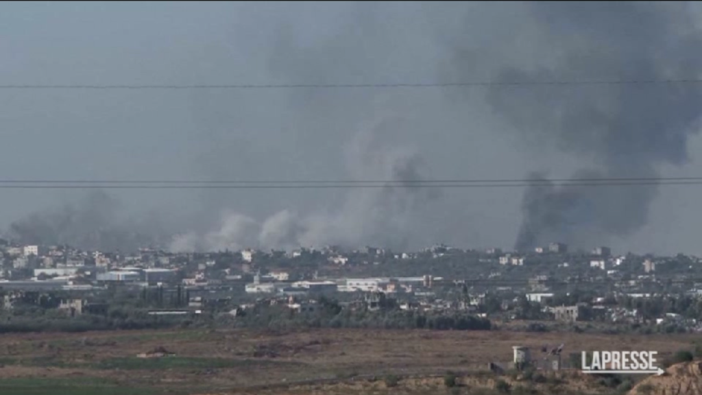 Nuvole di fumo hanno ricoperto l’orizzonte sopra la Striscia di Gaza, mentre l’esercito di Israele continua il suo pesante bombardamento del territorio palestinese.