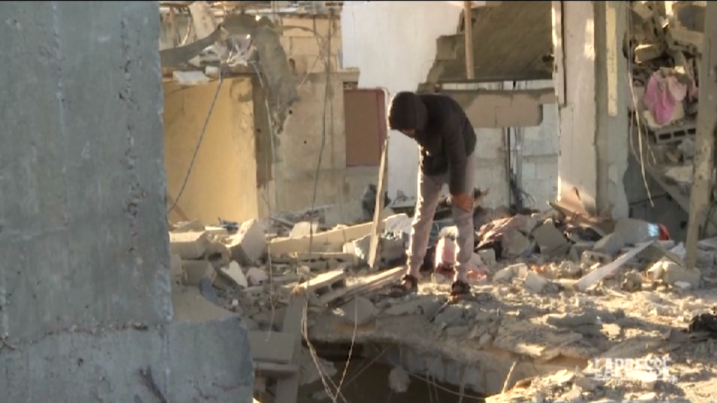I parenti delle vittime e dei feriti del raid israeliano sul campo profughi di Shabourah, a Rafah nel sud di Gaza, si aggirano tra le macerie dell’edificio colpito. Ci sono due morti, tra cui un ragazzino di 14 anni, e cinque feriti, che sono stati portati negli ospedali della zona.
