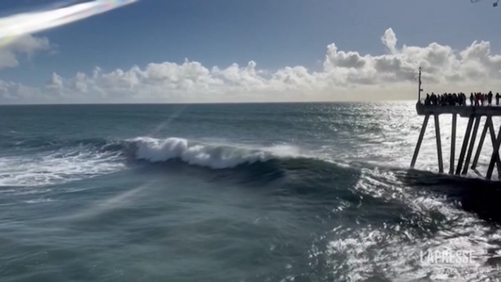 Le immagini dei surfisti che sabato hanno sfidato le onde giganti nella contea di Ventura (California meridionale) nonostante le autorità locali avessero diramato un avviso di evacuazione per alcuni dei residenti lungo la costa a causa dell’alta marea dovuta alle tempeste del Pacifico. I vigili del fuoco hanno detto alla popolazione di evitare le zone costiere, ma alcuni sportivi non sono riusciti a resistere alla tentazione di cavalcare le onde.