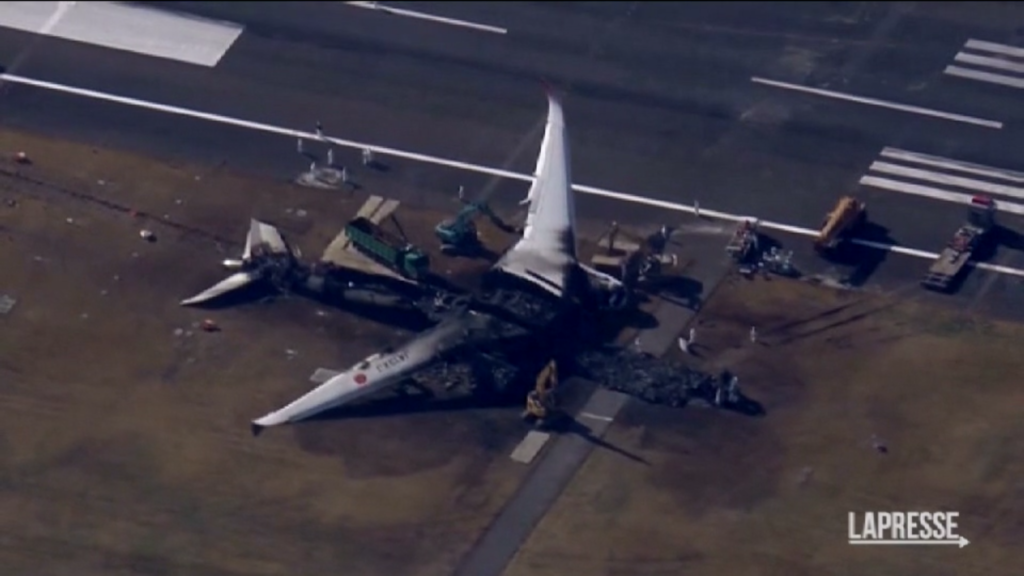 All’eroporto Haneda di Tokyo proseguono i lavori di rimozione del relitto dell’Airbus A350 del volo Japan Airlines 516, che mercoledì 3 gennaio ha preso fuoco dopo aver colpito un aereo della Guardia costiera durante la fase di atterraggio. Gru e operai sono al lavoro per smontare il relitto e rimuovere tutti i pezzi dalla pista. Secondo una trascrizione delle comunicazioni del controllo del traffico dei minuti precedenti l’incidente, l’l’Airbus A350 si è scontrato con un aereo della Guardia costiera molto più piccolo, che aveva ricevuto il permesso di avvicinarsi alla stessa pista, ma non l’autorizzazione al decollo. Il pilota dell’aereo della Guardia costiera, che era in partenza per una missione di consegna di aiuti umanitari ai sopravvissuti al terremoto nel Giappone centrale, è stato estratto vivo con gravi ustioni, ma cinque membri dell’equipaggio sono rimasti uccisi. Tutti i 379 passeggeri e membri dell’equipaggio del volo 516 sono sopravvissuti dopo un’evacuazione durata 18 minuti.