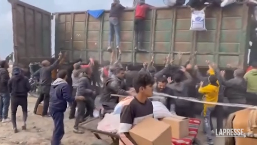 Decine di palestinesi affamati hanno circondato due camion di aiuti diretti nel nord di Gaza, portando via le scatole di rifornimenti che si trovavano all’interno. Nelle immagini – riprese dall’Associated Press – folle di giovani palestinesi sono state viste salire sul tetto di uno dei camion umanitari nel quartiere di Sheikh Ijlin, a ovest della città di Gaza, prima di scappare nelle strade adiacenti. L’incidente è uno dei numerosi furti di aiuti segnalati dai giornalisti di AP nelle ultime settimane. In un rapporto pubblicato alla fine di dicembre, le Nazioni Unite hanno affermato che più di mezzo milione di persone a Gaza – un quarto della popolazione – sta morendo di fame nel territorio colpito dalla guerra. Per mesi, i rifornimenti hanno faticato a raggiungere la metà settentrionale dell’enclave, compresa la città di Gaza, epicentro dei combattimenti tra Israele e Hamas. Tutti gli aiuti finora entrati nella Striscia sono arrivati dal valico di Rafah, a sud, al confine con l’Egitto.