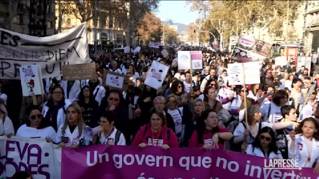 Lavoratori del settore sanitario in protesta a Barcellona. Per questo comparto si tratta della più grande manifestazione indetta finora in Spagna. Centinaia di manifestanti si sono riuniti per chiedere una riduzione dei carichi di lavoro e migliori retribuzioni. Lo sciopero, che va avanti da un mese, coincide con il picco della stagione influenzale e con un’epidemia gastrointestinale.