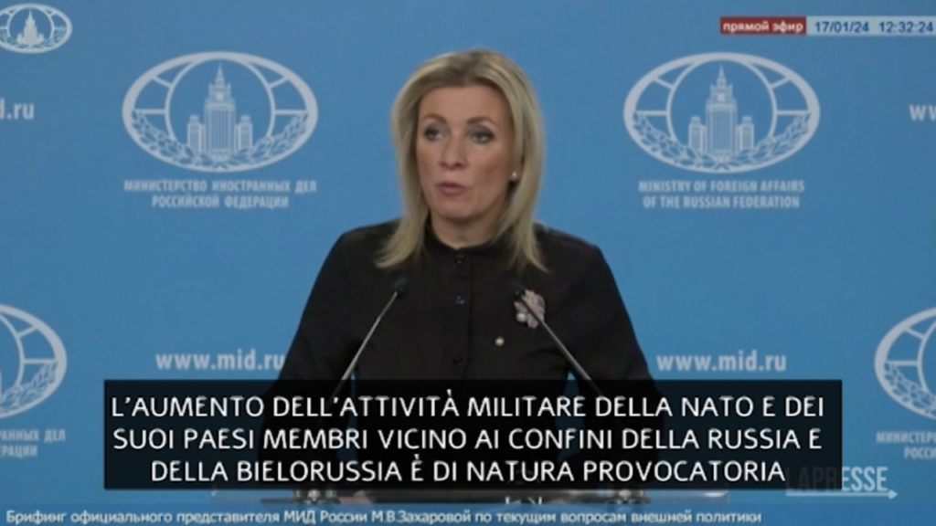 “L’aumento delle attività militari della Nato e dei suoi Paesi membri vicino ai confini della Russia e della Bielorussia è di natura provocatoria”. Lo afferma la portavoce del ministero degli Esteri russo, Maria Zakharova, in un briefing con la stampa. Commentando la mossa della Polonia di consentire l’ingresso di truppe tedesche sul proprio territorio, Zakharova ha affermato che essa contribuisce al “completo degrado dell’architettura di sicurezza europea”. “Tali passi, ovviamente, non rimarranno senza una reazione appropriata da parte russa”, ha detto Zakharova. La portavoce ha inoltre affermato che la preparazione di un accordo interstatale tra Russia e Iran è nella sua “fase finale” e dovrebbe essere firmato durante una riunione dei presidenti dei due Paesi.