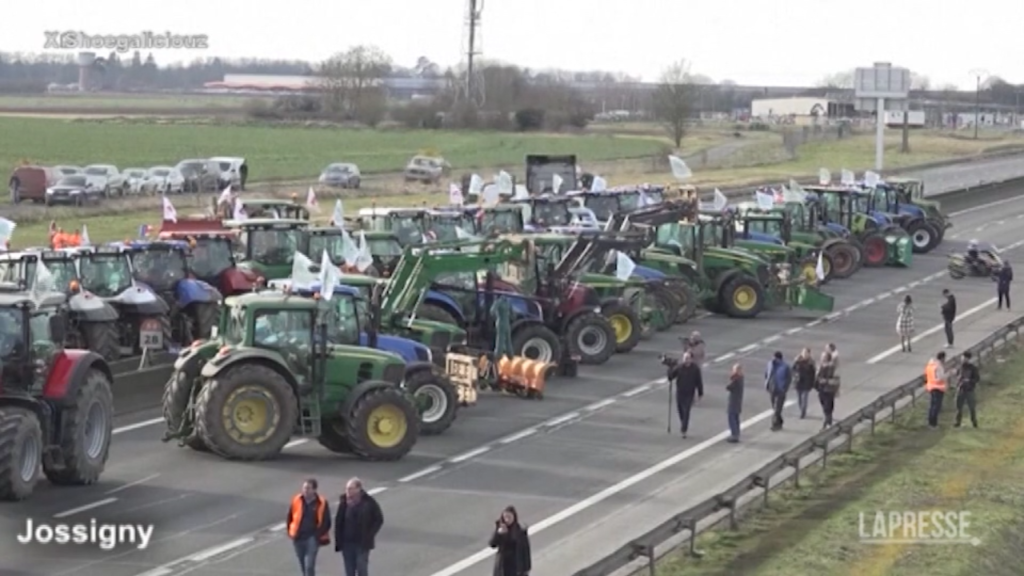 Intorno a Parigi sono iniziati i blocchi di alcune autostrade da parte dei trattori degli agricoltori in protesta contro le politiche dell’Unione europea sul settore. Al casello di Buchelay a Yvelines (a circa 60 km a nord-ovest di Parigi) l’autostrada A13 è bloccata in direzione provincia-Parigi. Dall’altra parte della capitale, a Jossigny (Seine-et-Marne), è iniziato anche il blocco della A4 con l’installazione dei primi trattori su entrambi i lati dello spartitraffico centrale. In totale si registrano 21 assembramenti in tutto il Paese e 25 blocchi (Nelle immagini anche la mobilitazione a Bordeaux). Sono mobilitati 1.710 agricoltori con 1.206 macchine agricole. Numeri più bassi rispetto all’ultima protesta che aveva coinvolto oltre 17mila agricoltori con 113 blocchi stradali. no archive, no resale