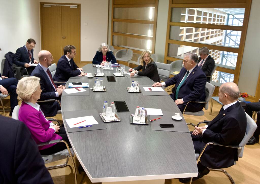 Prima del Consiglio europeo si è svolto un incontro ristretto tra la premier Giorgia Meloni, i vertici Ue, Ursula von der Leyen e Charles Michel, il presidente francese Emmanuel Macron, il cancelliere tedesco Olaf Scholz, e il premier ungherese Viktor Orban. L’obiettivo è provare a convicnere il leader magiaro a togliere il suo veto sul bilancio Ue. All’incontro era presente anche la segretaria generale del Consiglio, Thèrèse Blanchet. A dare notizia il presidente del Consiglio europeo, Michel, che ha postato una foto dell’incontro su X.