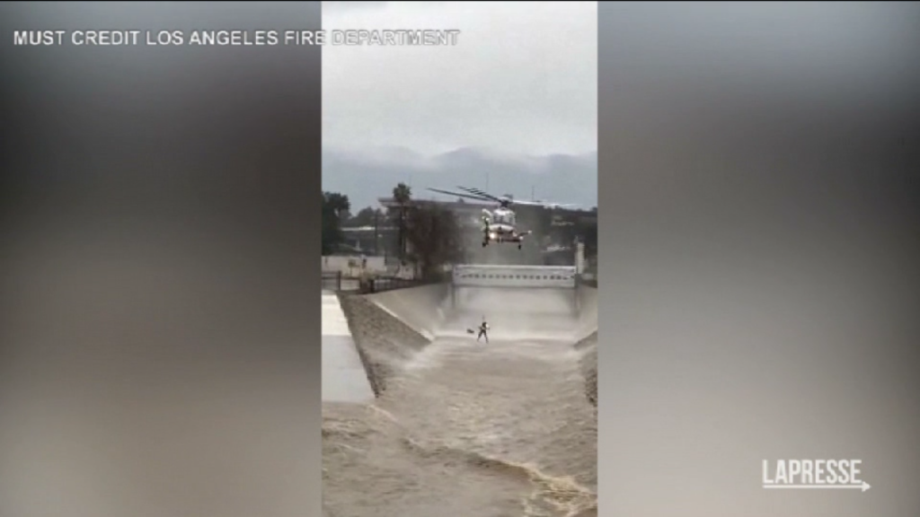 Allarmi inondazioni in corso per milioni di abitanti della California. Oltre 900mila utenze hanno subito black out elettrici e centinaia di voli sono stati cancellati o hanno subito ritardi in diversi aeroporti. Proclamato lo stato di emergenza in almeno otto contee. Piogge torrenziali a Los Angeles, dove scorre l’omonimo fiume: nelle immagini il drammatico salvataggio di un uomo che si era tuffato in acqua per salvare il suo cane. Sono dovuti intervenire i Vigili del fuoco con l’elicottero.
