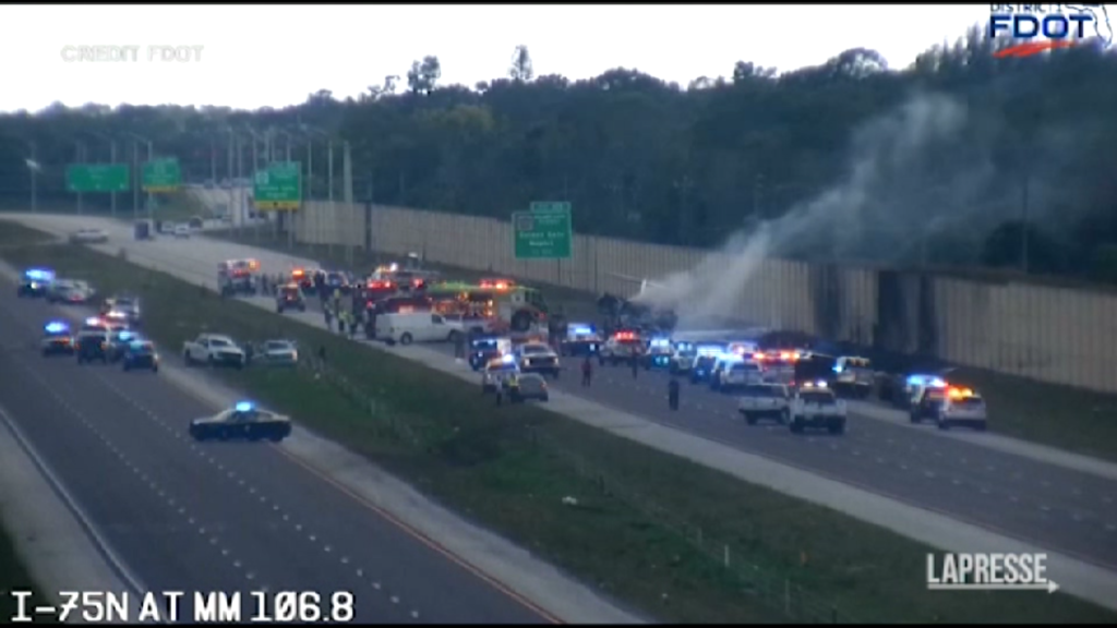 Un piccolo aereo si è schiantato al suolo sulla Interstate 75 in Florida venerdì pomeriggio, mandando il traffico in tilt. Fiamme e una alta colonna di fumo erano visibili sulla carreggiata. L’amministrazione dell’Aviazione federale ha identificato il velivolo come un jet Bombardier Challenger 600 con 5 persone a bordo. Secondo il bilancio più aggiornato, due persone sono morte nello schianto.