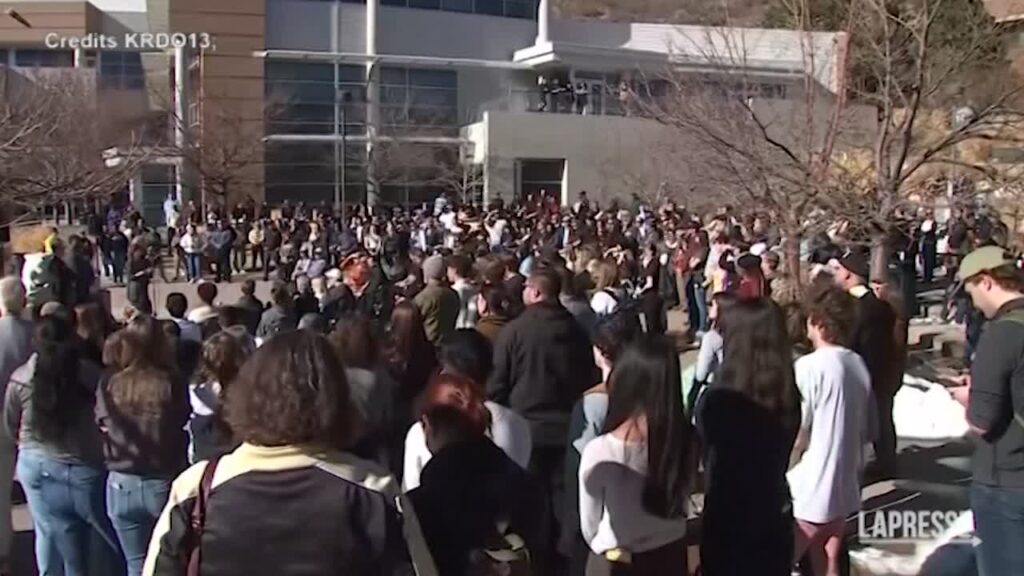 li studenti universitari di Colorado Springs, in Colorado, si sono riuniti lunedì per ricordare Celie Rain Montgomery, 26 anni, e Samuel Knopp, 24 anni, uccisi in una sparatoria nel campus dell’Università venerdì notte. Nicholas Jordan, uno studente, è stato arrestato con l’accusa di omicidio. La polizia aveva ricevuto una chiamata per spari provenienti dal dormitorio dell’università, la Creston House, dove ha trovato i due morti. NO RE-SALE, RE-USE OR ARCHIVE