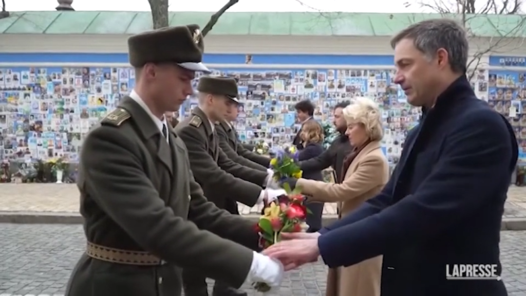 (LaPresse) Zelensky ha celebrato il secondo anniversario dell’invasione russa dell’Ucraina insieme ai leader mondiali. La premier Giorgia Meloni, la presidente della Commissione europea Ursula Von der Leyen, il primo ministro canadese Justin Trudeau e il premier belga Alexandre De Croo, insieme al presidente ucraino, hanno deposto una corona di fiori al “Muro della Memoria”, a Kiev, monumento dedicato ai caduti ucraini.