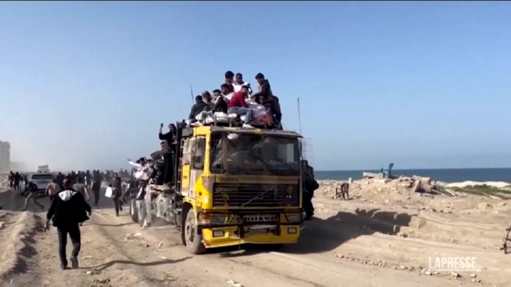 Migliaia di palestinesi inseguono i camion carichi di aiuti umanitari. Le immagini riprendono l’attuale situazione nella periferia di Gaza City dove hanno fatto il loro ingresso dei convogli di Egitto e Turchia, pieni di farina, acqua e cibo in scatola. Molte persone, sia giovani che adulti, sono state viste nel punto di raccolta in Rashid Street con dei sacchi di farina sulle spalle. Secondo le Nazioni Unite e altre organizzazioni umanitarie le condizioni sono sempre più critiche e hanno avvertito che si potrebbe verificare una carestia.