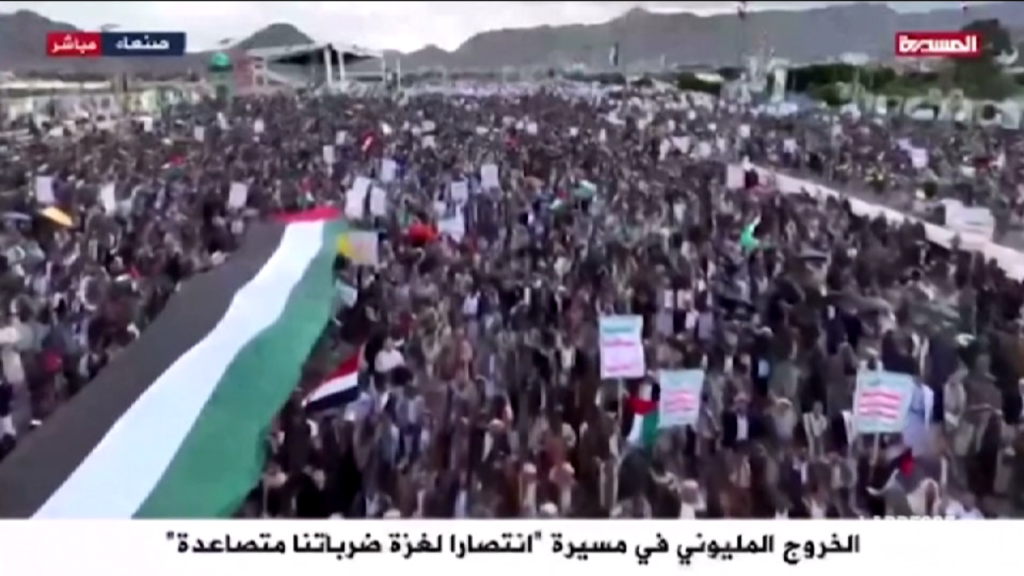 Migliaia di yemeniti nella capitale Sanaa, controllata dagli Houthi, hanno manifestato venerdì in segno di solidarietà con i palestinesi di Gaza. Il gruppo sostenuto dall’Iran ha organizzato proteste quasi ogni venerdì da quando è scoppiata la guerra tra Israele e Hamas il 7 ottobre. I dimostranti hanno intonato slogan tenendo in mano bandiere palestinesi e imbracciando mitragliatrici.