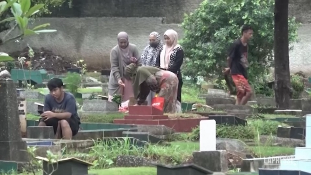 (LaPresse) Come da tradizione i fedeli musulmani a Giacarta, capitale dell’Indonesia, rendono visita ai parenti defunti nei cimiteri, alla vigilia dell’inizio del Ramadan. E’ usanza pregare per le persone scomparse e per chiedere perdono per i peccati commessi per avere l’anima purificata prima che inizi il mese sacro dell’Islam.