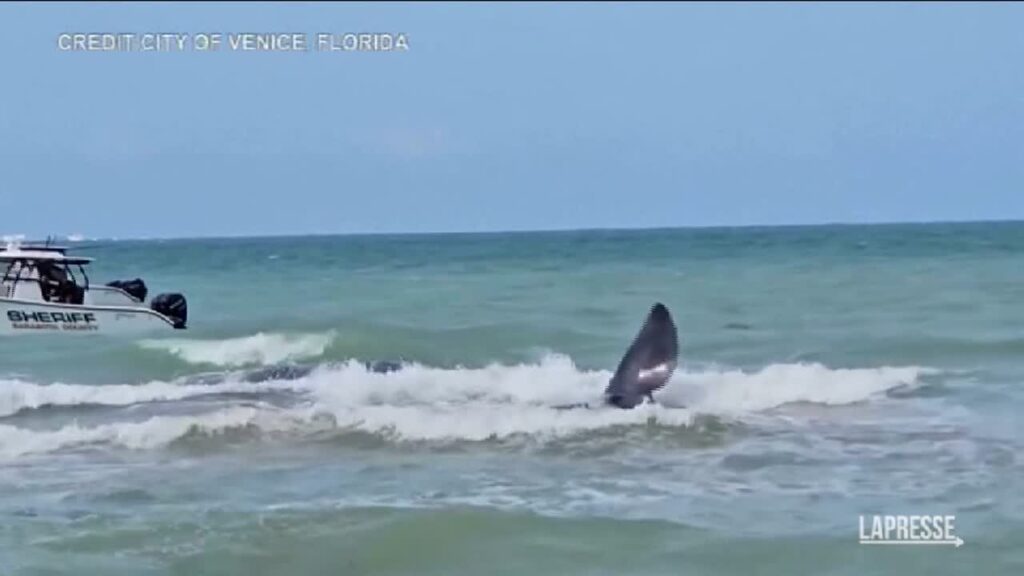 Un capodoglio si è spiaggiato su un banco di sabbia in Florida ed è morto. La polizia e i funzionari della Florida Fish and Wildlife Conservation Commission hanno provato a soccorrerlo domenica mattina al largo della spiaggia di Venice ma hanno avuto molte difficoltà a causa delle condizioni del mare.