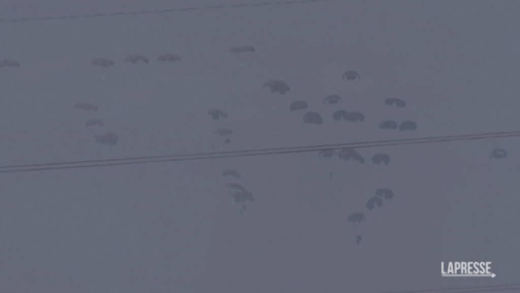 Una ingente quantità di aiuti umanitari è stata paracadutata sulla sulla Striscia di Gaza, nella speranza di alleviare la sofferenza di migliaia di palestinesi, stremati da oltre cinque mesi di guerra tra Israele e Hamas. Una telecamera dell’Associated Press ha catturato le grandi borse fluttuanti dai paracadute mentre atterravano sul suolo dell’exclave palestinese.