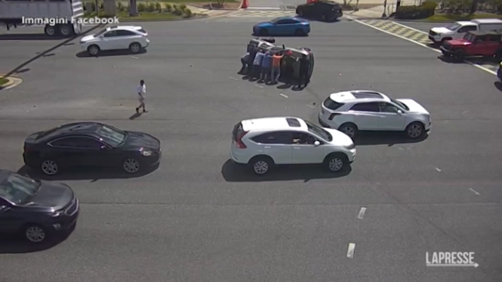 È diventato virale negli Stati Uniti un video pubblicato dal Dipartimento di Polizia di Daytona Beach in Florida che ritrae i momenti immediatamente successivi a uno scontro tra due Suv in un incrocio affollato. Dopo il forte impatto, uno dei due veicoli si ribalta completamente sul lato destro mettendo in pericolo chi vi si trovava a bordo ma, uno a uno, i passeggeri delle altre auto presenti sulla scena escono dai loro veicoli per soccorrere gli occupanti del Suv ribaltato. Alla fine, grazie al lavoro di otto persone, la macchina viene rimessa in piedi consentendo i soccorsi delle persone a bordo.