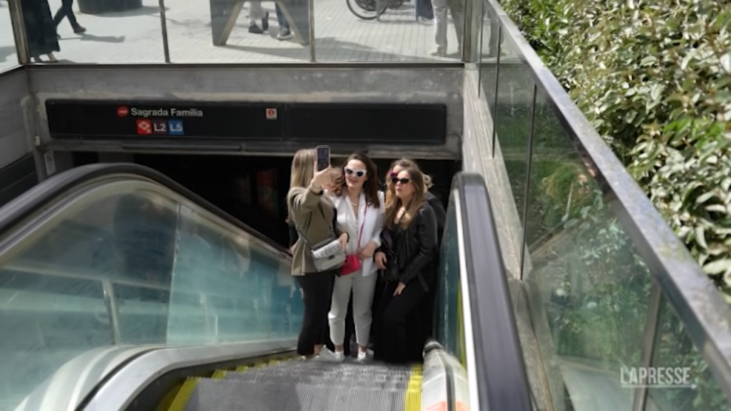 Le scale mobili della fermata della metropolitana di Barcellona che arriva alla Sagrada Familia sono diventate una tappa fissa per turisti e residenti per fare foto e video dell’opera di Gaudì. Il comune della città catalana per evitare assembramenti e ridurre i rischi di selfie pericolosi ha posizionato dei cartelli che vietano foto e video mentre si sale con le scale. Per presidiare la zona è stata anche posizionata una guardia di sicurezza. Dalle immagini però si vede che i divieti non stanno fermando i turisti.