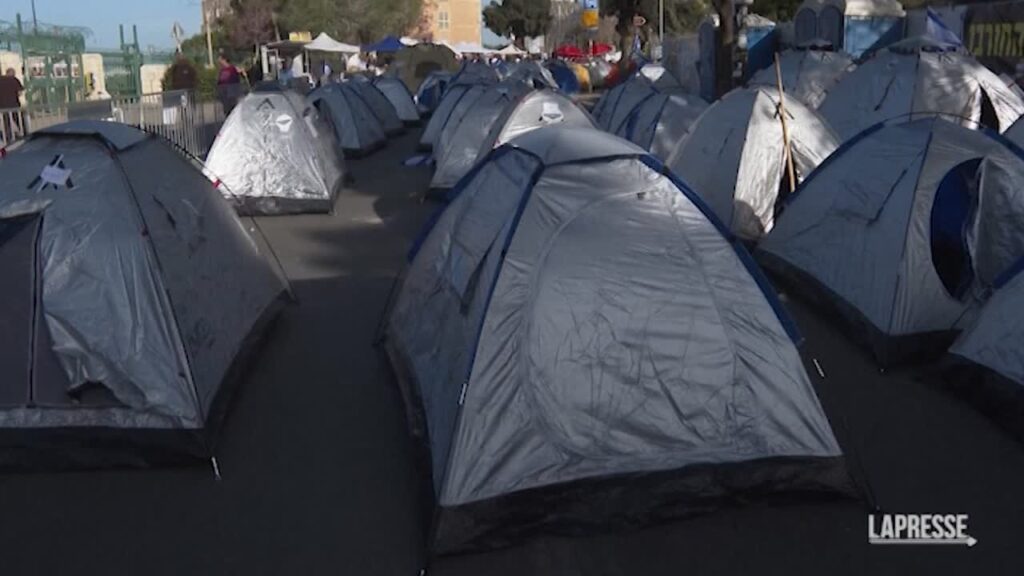 Decine di migliaia di israeliani hanno affollato domenica il centro di Gerusalemme nella più grande protesta antigovernativa da quando il Paese è entrato in guerra dopo gli attacchi di Hamas dello scorso 7 ottobre. I manifestanti, che dopo l’imponente dimostrazione di sabato sera hanno allestito una tendopoli davanti alla Knesset per rendere permanente la protesta, hanno esortato il governo a raggiungere un accordo per il cessate il fuoco per liberare decine di ostaggi tenuti a Gaza dai militanti di Hamas e a indire elezioni anticipate. Gli organizzatori hanno promesso di continuare la manifestazione per diversi giorni.