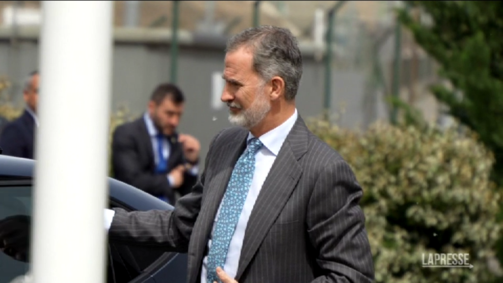 Re Felipe di Spagna, il presidente della Generalitat Pere Aragonès e il ministro dell’Industria Jose Manuel Soria, in visita alla fabbrica di assemblaggio di batterie che Seat sta costruendo a Martorell, vicino a Barcellona. Il sovrano è anche salito a bordo di un’auto modello Cupra.
