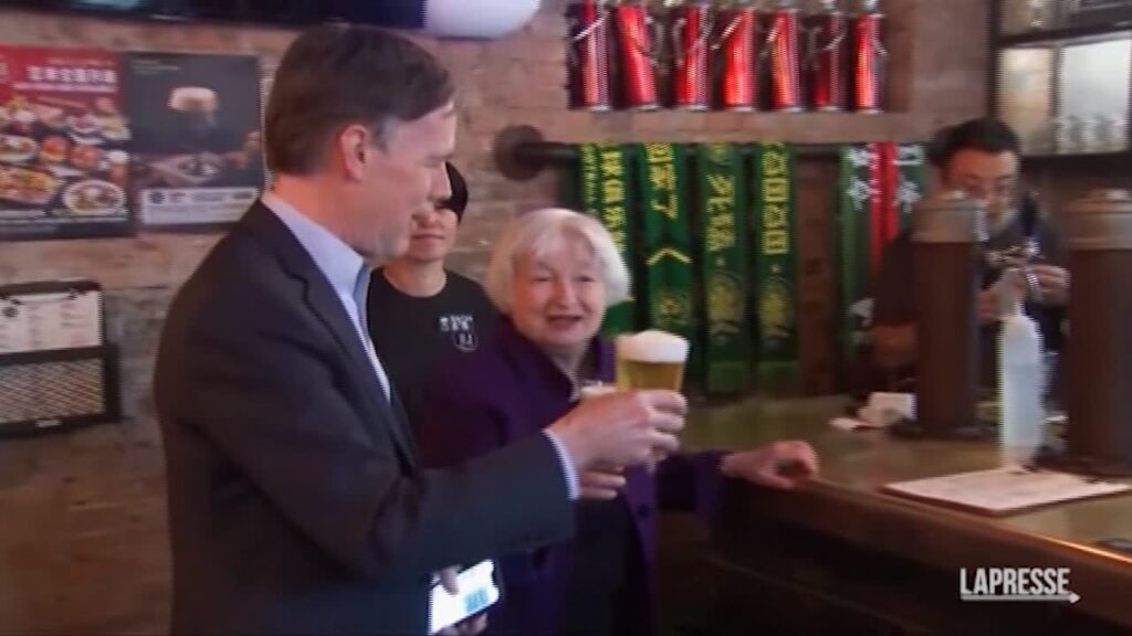 Janet Yellen e Nicholas Burns al birrificio Jing-A di Pechino. Il Segretario al Tesoro e l’Ambasciatore degli Stati Uniti in Cina hanno brindato con una birra prodotta con luppolo americano nel locale co-fondato da un cittadino statunitense. La visita per promuovere le esportazioni dei prodotti Usa.