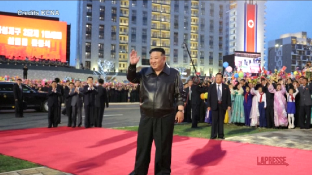 Il leader nordcoreano Kim Jong Un ha partecipato a una grande cerimonia per il completamento di un nuovo quartiere residenziale a Pyongyang. Le immagini della Korean Central News Agency (KCNA) hanno mostrato Kim tagliare un grande nastro e salutare la folla, mentre venivano lanciati fuochi d’artificio e aerei sorvolano la zona. Il nuovo quartiere, chiamato Hwasong, alla periferia di Pyongyang, è nato con la costruzione di 10mila nuovi appartamenti. Il quartiere fa parte di un progetto che prevede la costruzione di un totale di 50mila nuove abitazioni nella capitale entro il 2025.