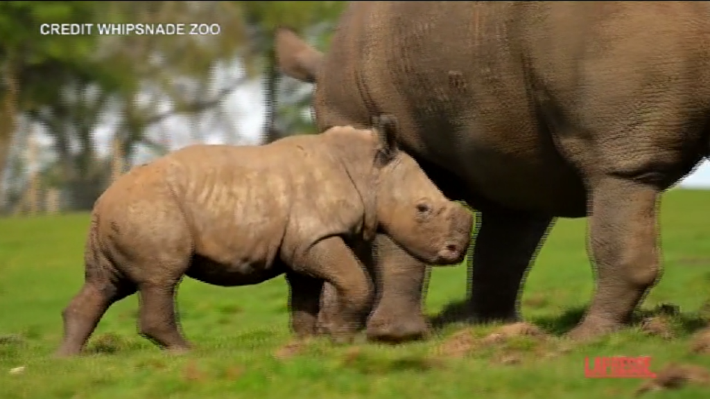 Un cucciolo di rinoceronte bianco si gode il sole primaverile allo zoo di Whipsnade, il più grande del Regno Unito. Il piccolo di sei settimane pesa 100 kg e si chiama Benja. Insieme alla mamma Jaseera si avventura fuori dalla tana. Lo zoo fa parte di ZSL, un ente di beneficenza che opera a livello mondiale per la tutela delle specie in via di estinzione e dei loro habitat.
