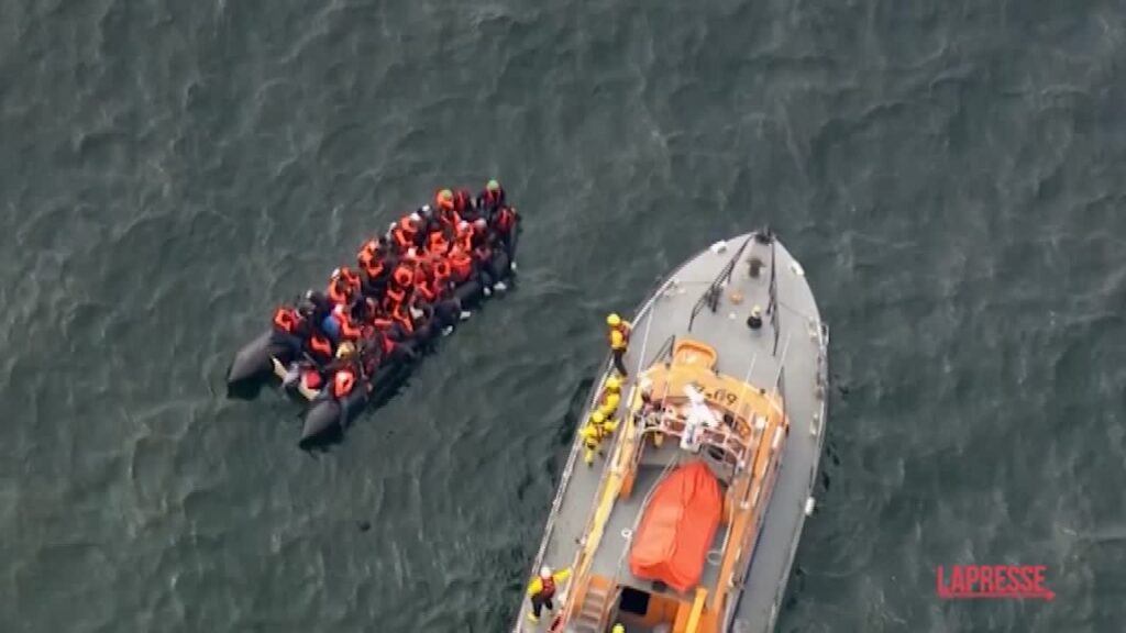 Un gruppo di migranti salvati dalla polizia di frontiera britannica mentre erano alla deriva su una piccola e affollata imbarcazione nel Canale della Manica. Le immagini mostrano le operazioni di soccorso dei naufraghi. Successivamente i migranti sono stati portati nella città costiera di Dover. Nel frattempo, secondo i media francesi, almeno cinque persone sono morte nel tentativo di attraversare la Manica.