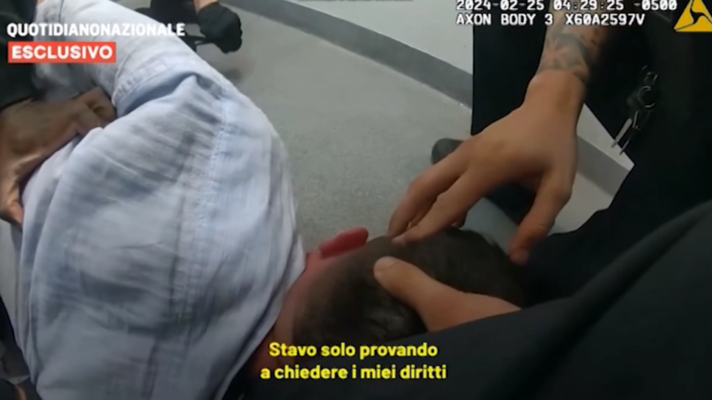 In un video pubblicato in esclusiva da Quotidiano Nazionale le immagini che mostrano i modi violenti da parte della polizia nei confronti dello studente italiano Matteo Falcinelli, fermato a Miami nella notte fra il 24 e 25 febbraio. Il ragazzo prima è stato sbattuto a terra dagli agenti poi, una volta in una cella di transito alla stazione di polizia di North Miami Beach, in quattro lo avrebbero incaprettato con l’Hogtie restraint. Tutta la scena viene ripresa dalle bodycam degli agenti.