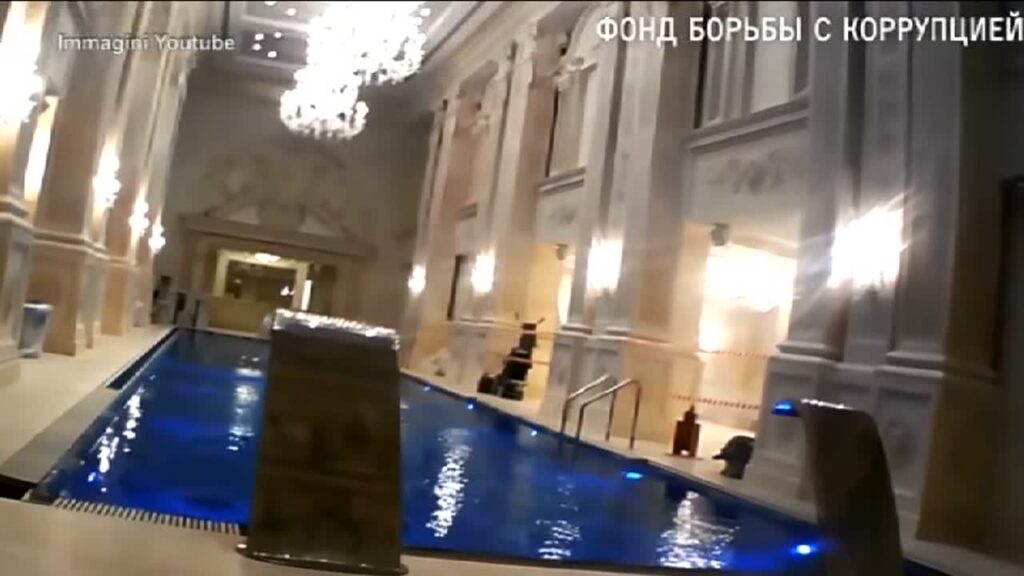 Una telecamera nascosta svela alcune stanze del palazzo di Vladimir Putin: una piscina, una vasca idromassaggio, salotti di lusso nel castello sulla costa del Mar Nero.