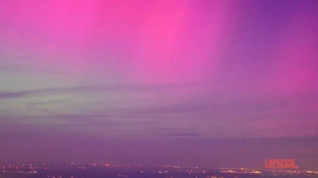Una tempesta solare insolitamente forte ha causato un’imponente aurora boreale visibile in moltissime parti del pianeta. In Germania, come in molte altre parti del mondo, l’aurora ha colorato di rosa i cieli, abbagliando lo skyline di diverse città, tra cui Brocken, Eisenberg e Guelpen.
