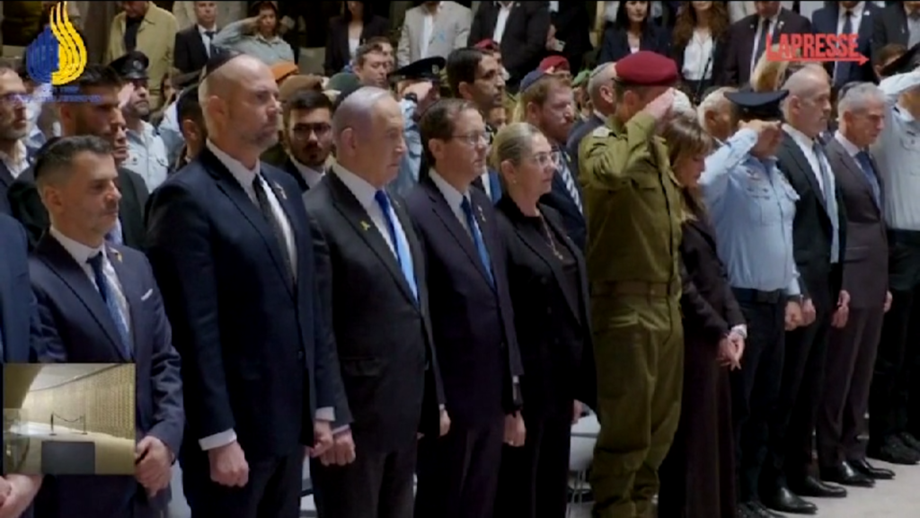 Israele lunedì si è fermato per due minuti, durante il suono di una sirena, per celebrare il Giorno dei Caduti che ricorda i militari e i membri dei servizi di sicurezza caduti nello svolgimento del proprio dovere, compresi quelli rimasti uccisi negli attacchi terroristici. La sirena ha avviato ufficialmente le commemorazioni in diversi luoghi, dai cimiteri al monte Herzl, dove si è svolta la cerimonia ufficiale a cui hanno partecipato anche il presidente Isaac Herzog e il premier Benjamin Netanyahu. “Siamo noi, Israele, o loro, i mostri di Hamas”, ha detto Netanyahu che ha chiarito: “Siamo determinati a vincere questa lotta, raggiungeremo l’obiettivo della vittoria, innanzitutto, riportando a casa tutti i nostri ostaggi“.