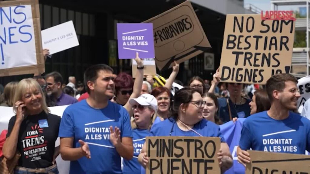 Il collettivo “Dignitat a les Vies” ha manifestato davanti alla stazione di Sants a Barcellona per chiedere miglioramenti nel servizio ferroviario dei pendolari. È stata organizzata anche una partita a tombola per mettere in palio uno sgabello, come gesto ironico nei confronti delle ore che gli utenti devono trascorrere in piedi sul treno. I manifestanti riferiscono di essere “stufi” di subire ritardi, sovraffollamento o mancanza di sicurezza nei loro spostamenti quotidiani al lavoro o nelle scuole.