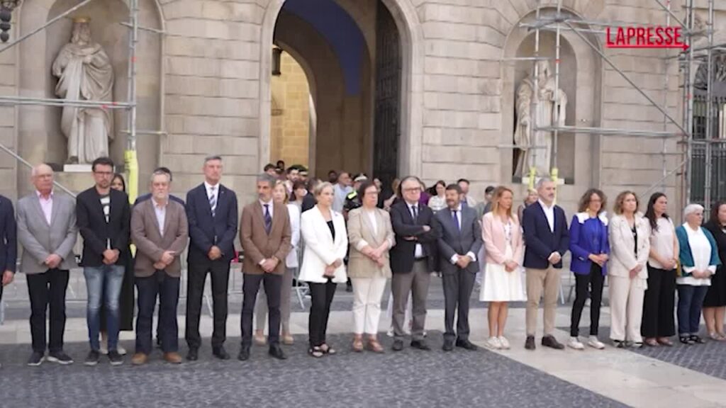 Minuto di silenzio a Plaça Sant Jaume per il femminicidio avvenuto nel quartiere Horta di Barcellona, dove una donna sarebbe stata gettata dal quarto piano dal suo compagno.