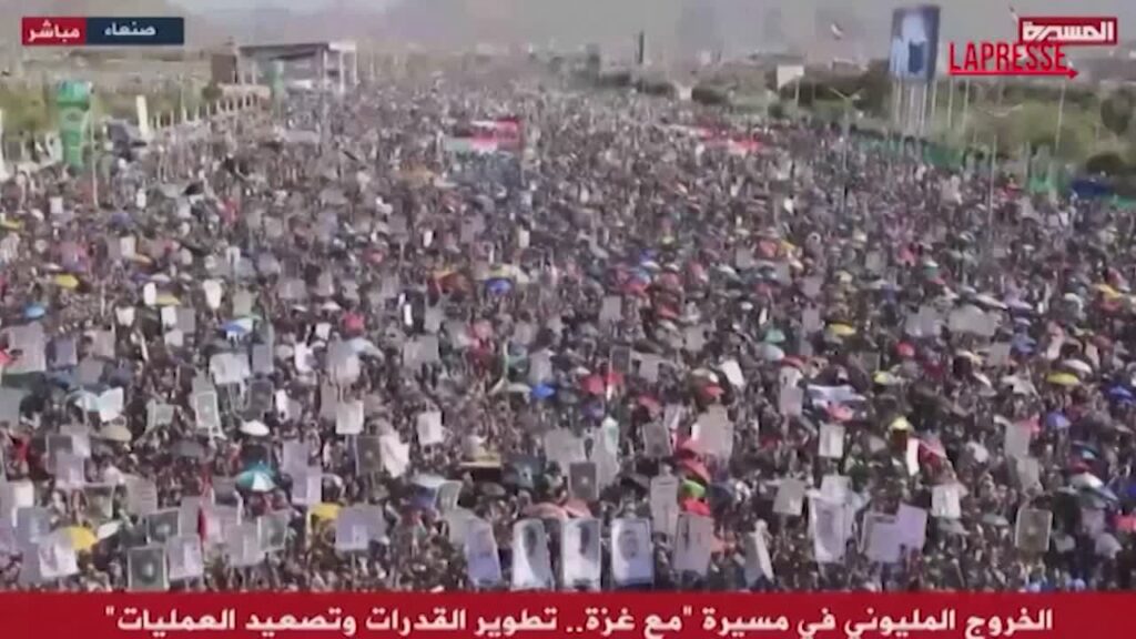 Una folla imponente è scesa in piazza venerd’ a Sanaa, capitale dello Yemen, controllata dai ribelli sciiti filo-iraniani Houti. Durante la manifestazione in solidarietà con il popolo palestinese di Gaza sono stati intonati cori contro Israele e gli Stati Uniti. “Allah è grande, morte all’America e a Israele, siano maledetti gli ebrei, vittoria all’Islam“, urlano i dimostranti. Dopo l’attacco del 7 ottobre di Hamas in Israele con oltre 1200 morti l’esercito dello Stato ebraico ha invaso militarmente la Striscia. Sono oltre 36mila le vittime palestinesi secondo il ministero della Sanità controllato dal movimento estremista.