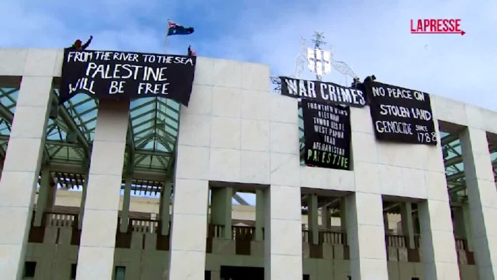 Manifestazione pro Palestina al Parlamento australiano. Un gruppo di persone si è introdotto nell’edificio violando il sistema di sicurezza, e ha raggiunto il tetto dove ha esposto alcuni striscioni. I manifestanti hanno protestato contro le operazioni di Israele nella striscia di Gaza, gridando “crimini di guerra” e “genocidio“, scandendo il motto “Dal fiume al mare, la Palestina sarà libera“. Dopo oltre un’ora di tensione, i quattro manifestanti sono stati arrestati.
