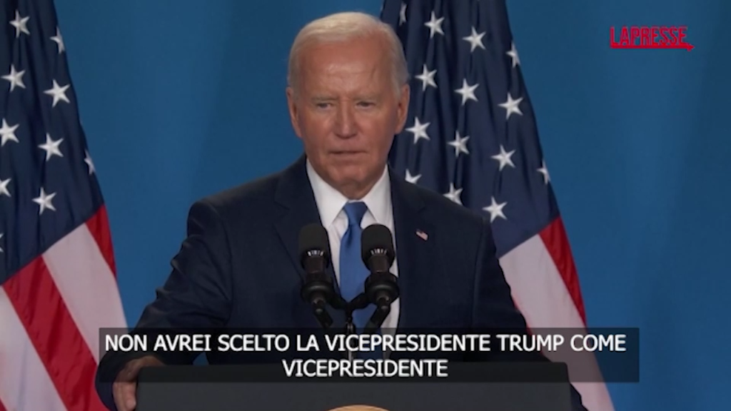 Alla conferenza stampa conclusiva del vertice Nato, il presidente americano Joe Biden chiama “Trump” la vicepresidente Kamala Harris. Nonostante gli scivoloni nel corso della serata, Biden si è definito di nuovo l’unica persona in grado di candidarsi alla presidenza degli Stati Uniti.