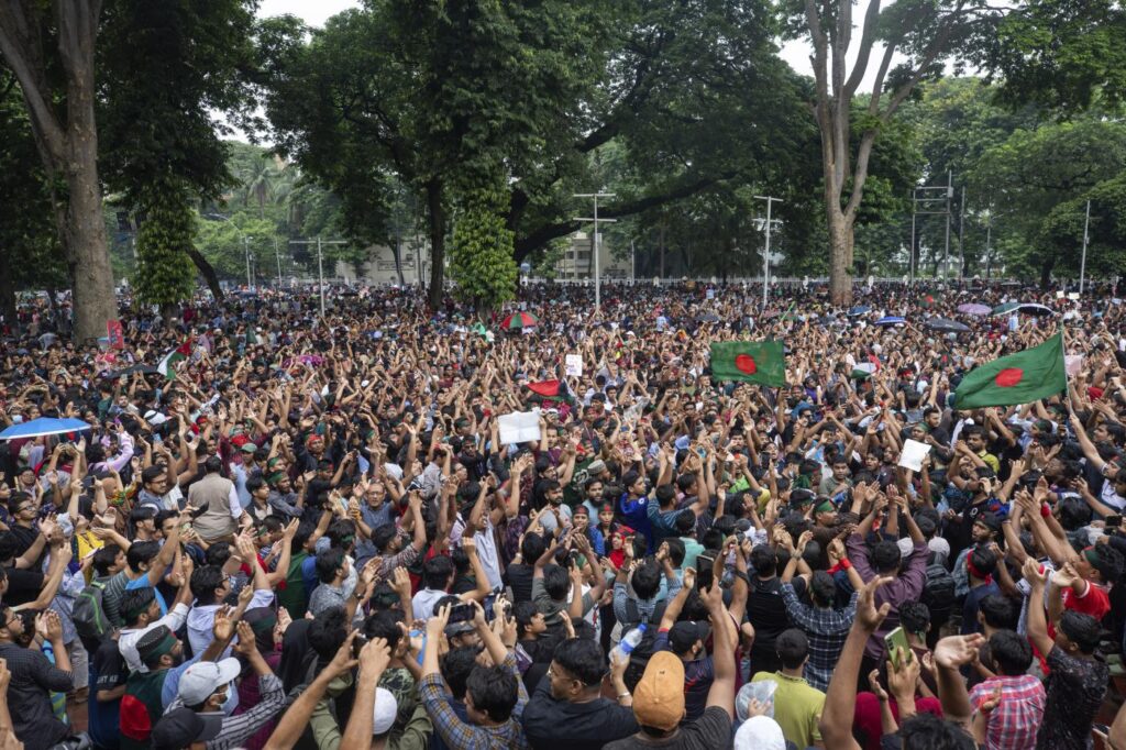 Mentre infuriavano le violenze, la premier Sheikh Hasina ha dichiarato che coloro che stavano compiendo “sabotaggi” e distruzioni in nome delle proteste non erano più studenti, ma criminali, e ha detto che la popolazione avrebbe dovuto affrontarli con le maniere forti. Il partito di governo Awami League ha affermato che la richiesta di dimissioni di Hasina dimostra che le proteste sono state prese in mano dal principale partito di opposizione Bangladesh Nationalist Party e dal partito Jamaat-e-Islami, ora bandito.
