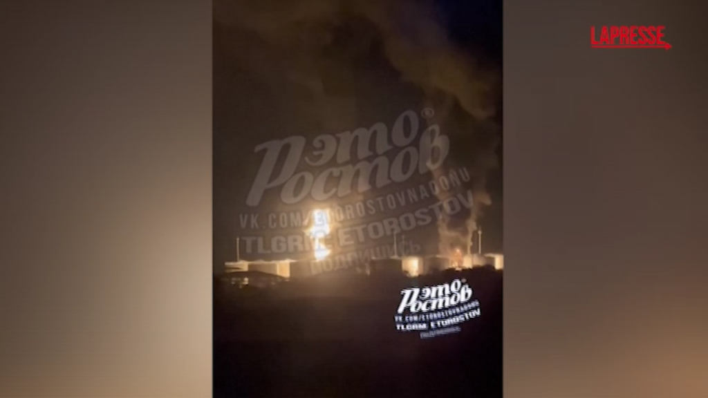 Un deposito di carburante a fuoco nel distretto di Kamensky, nella regione di Rostov in Russia, a causa dell’attacco di un drone ucraino. Le autorità locali hanno invitato i residenti delle aree vicine all’impianto a chiudere le finestre e a non uscire di casa a causa dell’inquinamento atmosferico. L’incendio è stato spento a mezzogiorno, ha dichiarato l’amministrazione distrettuale, e non sono state segnalate vittime.
