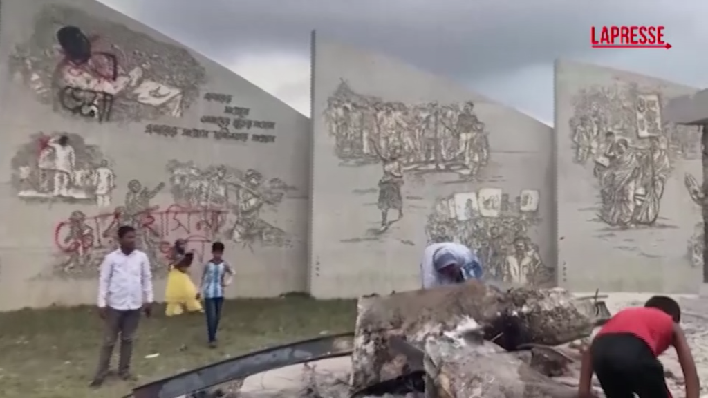I manifestanti a Dacca hanno distrutto una grande statua di Sheikh Mujibur Rahman, leader fondatore del Bangladesh e padre di Sheikh Hasina, che ieri si è dimessa da primo ministro e ha lasciato il Paese. La sua partenza ha fatto seguito a settimane di proteste contro un sistema di quote per i posti di lavoro governativi che sono sfociate nella violenza mettendo a critica in maniera complessiva i suoi 15 anni di governo.