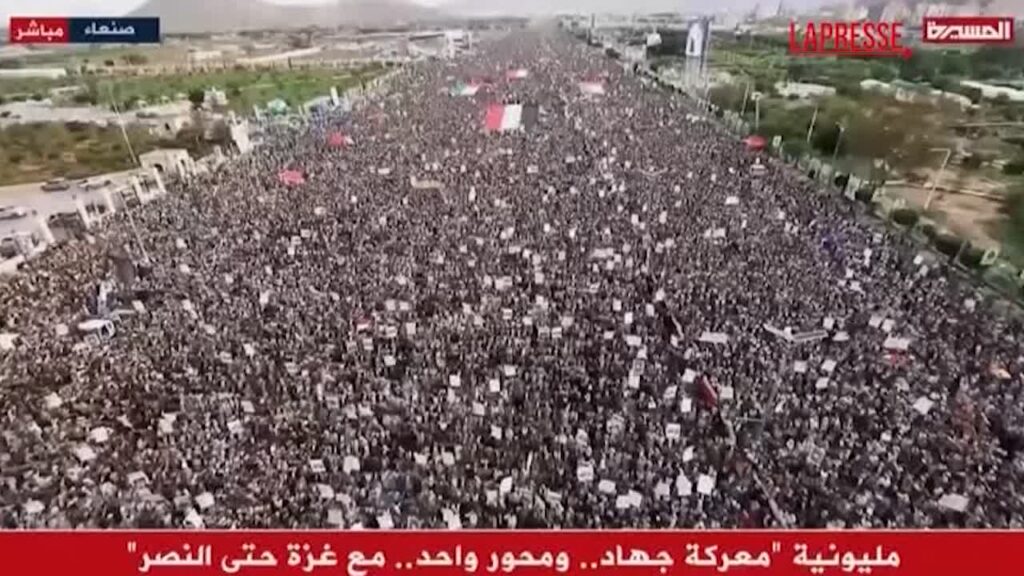 Proseguono le manifestazioni a Sanaa, in Yemen, a sostegno della popolazione palestinese di Gaza. Migliaia le persone scese in piazza con i manifesti e le foto di Yahya Sinwar, nominato nuovo leader politico di Hamas dopo che il suo predecessore, Ismail Haniyeh, è stato ucciso in un presunto attacco israeliano a Teheran, in Iran.