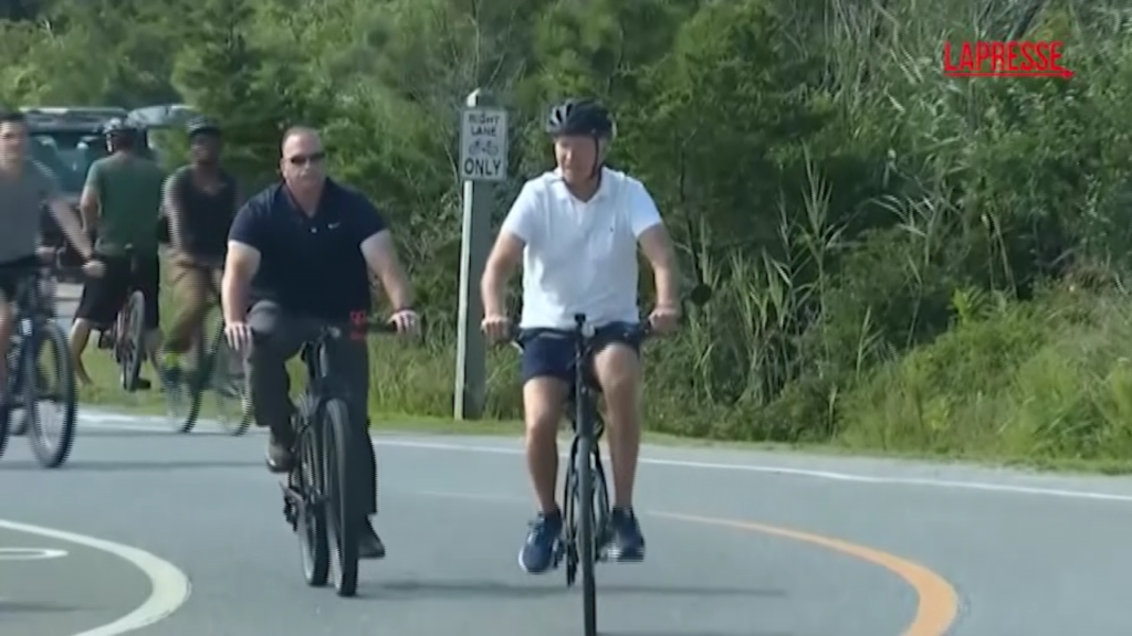 Il Presidente degli Stati Uniti Joe Biden è uscito domenica per un giro in bicicletta nel Delaware, dove sta trascorrendo il fine settimana assieme alla famiglia nella loro casa di Rehoboth Beach. Biden è passato accanto alle persone che lo applaudivano, ma non si è fermato e non ha risposto alle domande.