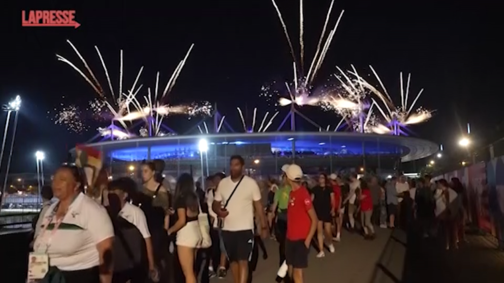 Fuochi d’artificio allo Stade de France in occasione della cerimonia di chiusura dei Giochi Olimpici di Parigi 2024. Il passaggio di consegne con Los Angeles 2028 a coronamento di due settimane e mezzo straordinarie di sport ed emozioni.