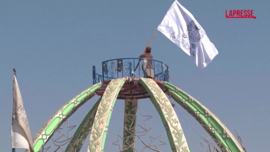 I Talebani hanno issato le loro bandiere nella provincia di Helmand, in Afghanistan, nel tentativo di celebrare il terzo anniversario della loro presa del potere nel Paese. Gli estremisti islamici hanno assunto il controllo di Kabul il 15 agosto 2021 dopo che le forze statunitensi e della Nato si sono ritirate dall’Afghanistan dopo due decenni di guerra.