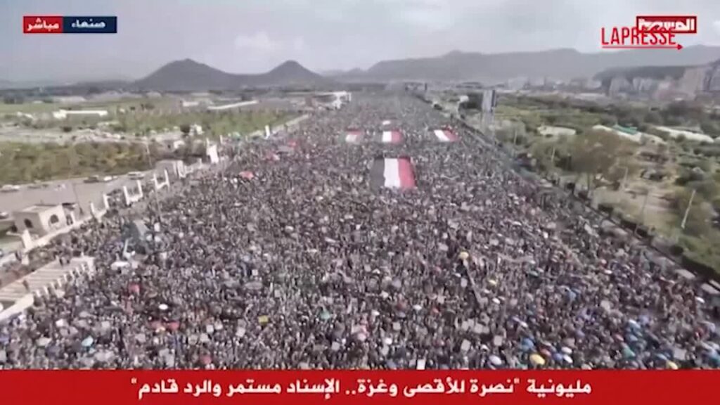 Migliaia di manifestanti yemeniti sono scesi in strada nella capitale Sanaa dopo la preghiera del venerdì per esprimere il loro sostegno ai palestinesi della Striscia di Gaza, mentre continua la guerra tra Israele e Hamas. I ribelli Houthi organizzano proteste quasi ogni venerdì dall’inizio del conflitto.