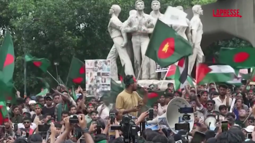 Migliaia di persone si sono radunate a Dhaka, capitale del Bangladesh, per celebrare un mese dall’estromissione dell’ex primo ministro Sheikh Hasina. Hasina è fuggita in India il 5 agosto dopo settimane di violenze che hanno causato più di 600 morti, tra cui molti studenti. Il corteo centrale, denominato “Marcia shaheedi” o “Processione per i martiri”, è partito dal campus dell’Università di Dhaka e ha sfilato per le strade della capitale. Oltre alle numerose bandiere del Bangladesh, alcuni partecipanti hanno portato una gigantesca bandiera palestinese.