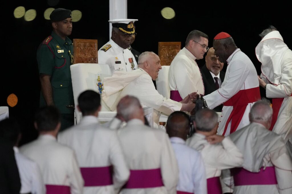 Alle 19.09 (11.09 ora di Roma), Papa Francesco è giunto in Papua Nuova Guinea. Al suo arrivo all’Aeroporto Internazionale di Port Moresby, capitale dello Stato oceanico, il Santo Padre Francesco è stato accolto dal Vice Primo Ministro e da due bambini in abito tradizionale che gli hanno portato in dono dei fiori.