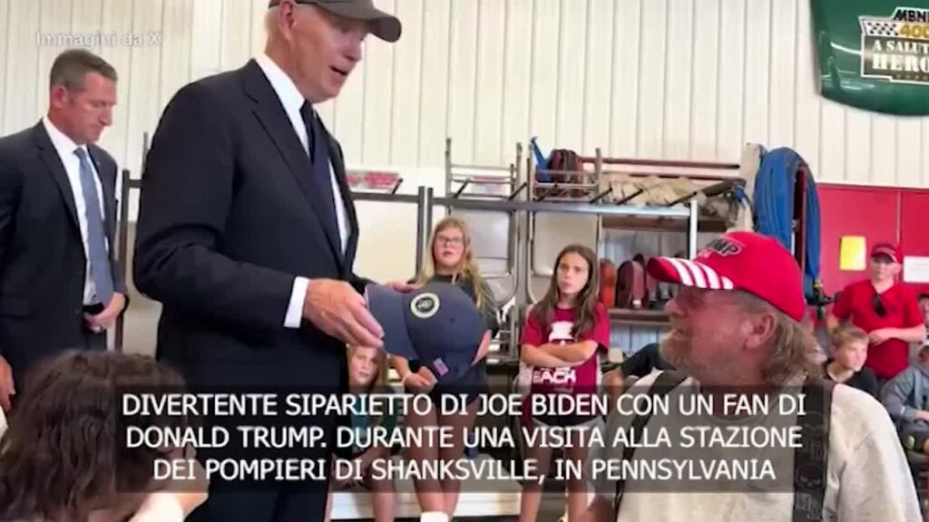 (LaPresse) Divertente siparietto di Joe Biden con un fan di Donald Trump. Durante una visita alla stazione dei pompieri di Shanksville, in Pennsylvania, per le celebrazioni dell’11 settembre, il presidente si intrattiene con un uomo con il cappellino di Trump a cui regala il suo cappellino presidenziale. “Me lo autografi? Ti ricordi il tuo nome?”, scherza il supporter del tycoon repubblicano. “No, non me lo ricordo, sono vecchio e sono lento”, la replica ironica del capo della Casa Bianca. “Sei un vecchiaccio”, insiste l’interlocutore, sorridendo. “Ma anche tu ne sai qualcosa a proposito dell’essere vecchio”, controreplica Biden, che aggiunge: “Mi ricorda un ragazzo con cui sono cresciuto nel quartiere”. Poi nel consegnare il cappello firmato al trumpiano gli dice: “Ho bisogno di quel cappello”, indicando il copricapo con la scritta ‘Trump 2024’. “Vuoi il mio autografo?”, gli chiede l’uomo porgendogli il cappellino. Infine il presidente, sorridendo, si mette in testa il cappellino della campagna di Trump tra l’ilarità e gli applausi dei presenti, mentre il suo interlocutore indossa quello presidenziale e dice a Biden: “Ora sono orgoglioso di te, vecchiaccio”. La Casa Bianca poi ha spiegato che quello del presidente è stato “un segno di distensione e unità in una giornata di lutto e commemorazione per gli Stati Uniti”.