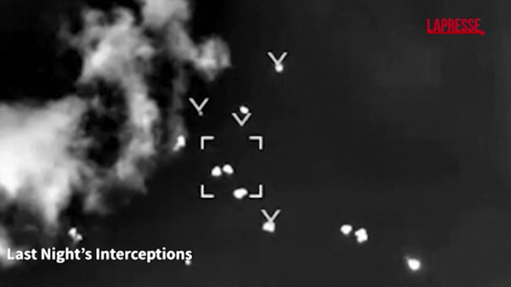 L’esercito israeliano ha dichiarato che circa 150 razzi, missili da crociera e UAV sono stati lanciati verso il territorio israeliano, la maggior parte dei quali puntati verso il nord del Paese. Almeno quattro persone sono rimaste ferite, ma l’Idf ha affermato che gli alti tassi di intercettazione hanno impedito danni significativi. Nel video, diffuso dalle Forze di difesa israeliane, si vedono i razzi di Hezbollah intercettati dalla contraerea israeliana.